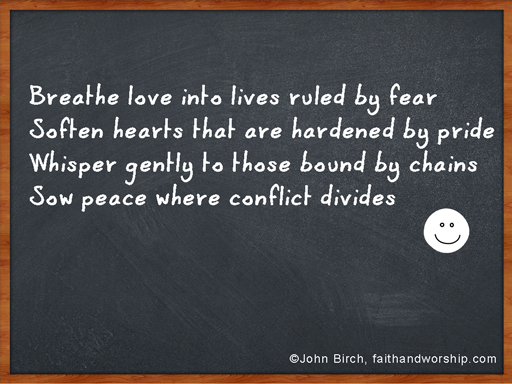These Christian prayers, covering a wide variety of themes including Advent, Christmas, old age, peace, contentment, love, joy, vision and others, come from the faithandworship.com website or from resources written by John Birch. They are written for sharing, so please feel free to 'click', 'save' and 'share' via Facebook, Twitter or whichever form of social media takes your fancy!
